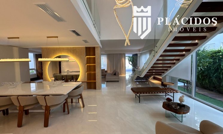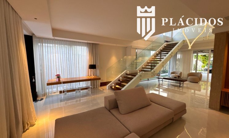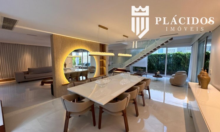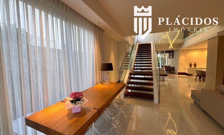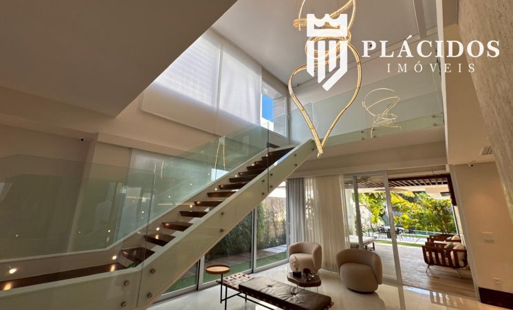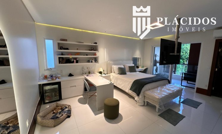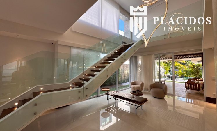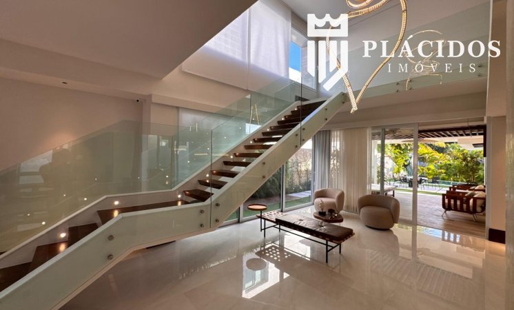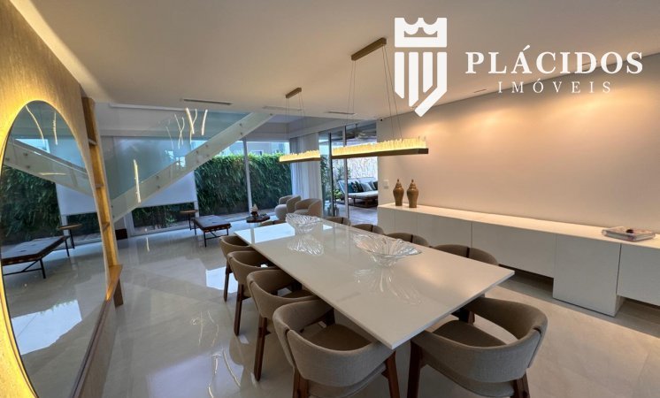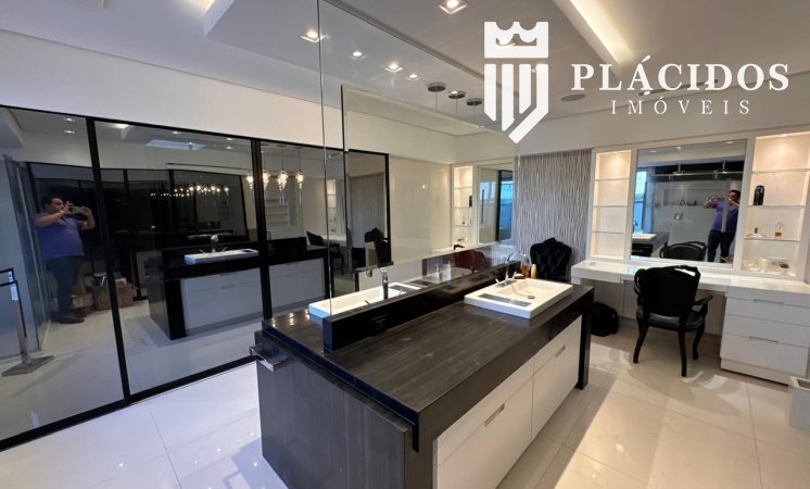 Localizada em Alphaville I, esta linda Mansão possui: terreno em ilha, com 600m2 de área 100% edificante - não tem APP (Área de Preservação Permanente). . Living com 100m2 em Salas de Estar e Jantar refrigerados 82.000 BTU's dutado, com som ambiente, Lavabo, Adega refrigerada p/ 200 garrafas e Louceiro Kitchens.. Cozinha com bancada mármore Calacata em ilha, cubas inox Mekal com triturador e armários Kitchens com iluminação interna LED. Equipamentos Kitchenaid com forno elétrico e coifa ilha. . Área de Serviço Kitchens com Máquina de Lavar e Secadora à gás Brastemp.. Varandas de Frente e Fundos mobiliadas, com som ambiente e 25m2 cada. . Espaço Gourmet com 48m2, mobiliado e refrigerado dutado, churrasqueira, fogão, coifa e máquina de gelo equipamentos Viking, bancada em Silestone, cuba inox Mekal com triturador e armários Kitchens com iluminação LED. Duas Cervejeras verticais. . Mezanino com Roupeiro e luz zenital. . Duas suítes filhos com camas de casal Queen 25m2 cada, todas com closet e armários Kitchens e varandas com parede verde automatizadas. Camas da loja Madeira Bonita e criados em laca. Iluminação natural por clarabóia. . Sanitários com porcelanato Portobello, bancadas em Silestone e louças/metais Deca. . Suíte Master com 30m2, cama de casal King size e mobiliário em laca Madeira Bonita. Gaveta refrigerada Kitchenaid e Home Theater. . Sala de Banho com Bancada em mármore asiático Ônix, pia dupla em ilha, banheira, louças/metais Deca e chuveiro duplo. Bancada de maquiagem em laca e poltronas Toque da Casa. . Garagem para 5 carros soltos e dois presos. . Academia de ginástica com 100m2 e equipamentos Technogym. Spa com Salão de Beleza e maca para massagem. Sanitário da Academia com bancada em Silestone. . Maleiro com Rack de Automação, CFTV, Central Telefone com 8 ramais, Internet em fibra-ótica com distribuição via cabos Cat7 e 5 repetidores wi-fi. . Quarto de Motorista e Dependência de Empregadas (Suíte) com armários, TV e ar condicionado. . Depósito e Maleiro. . Reaproveitamento de água de chuva e irrigação automatizada. Aquecimento solar para água quente. Poço artesiano.