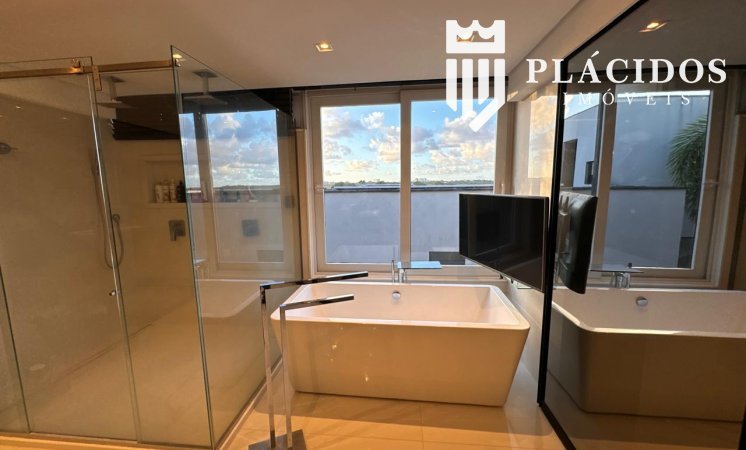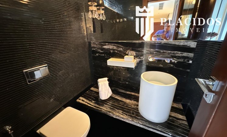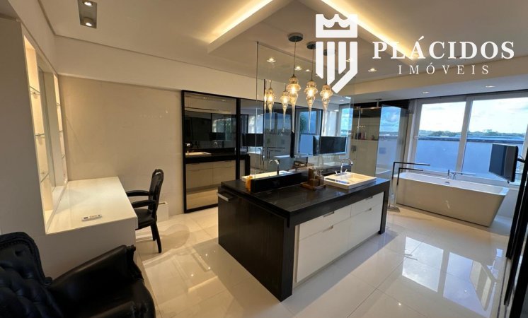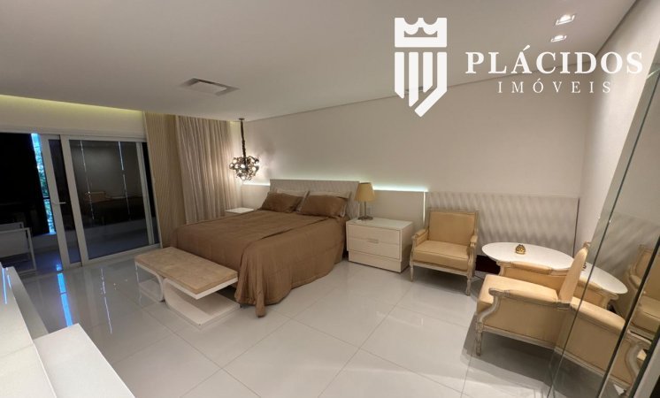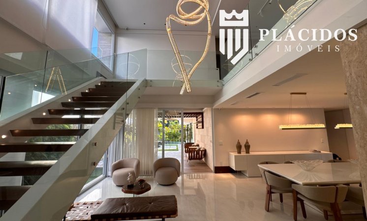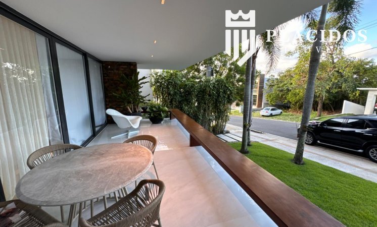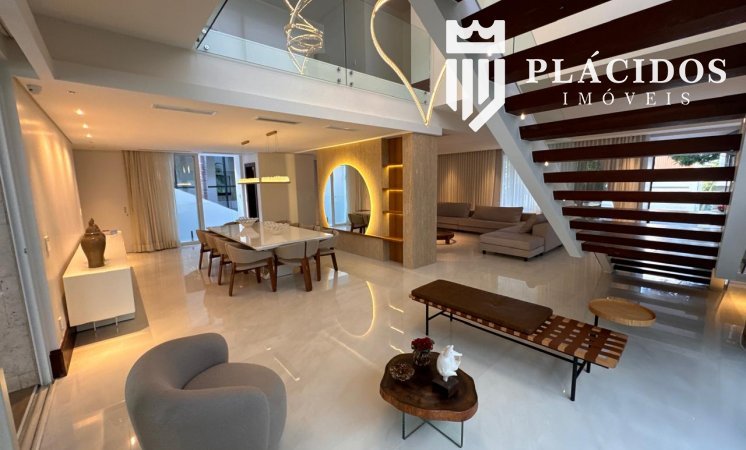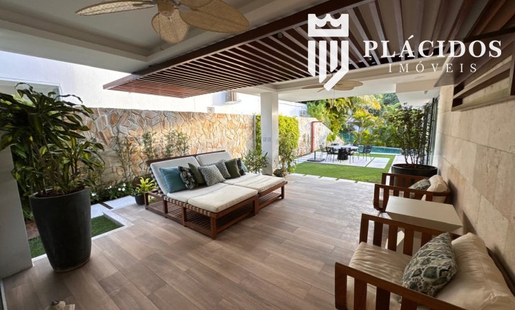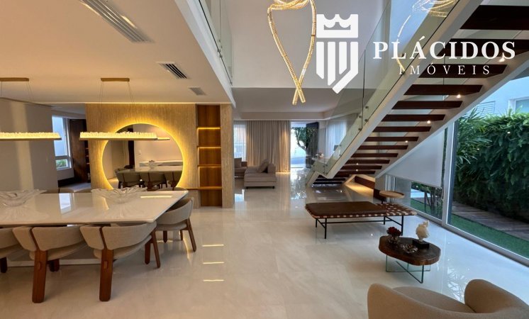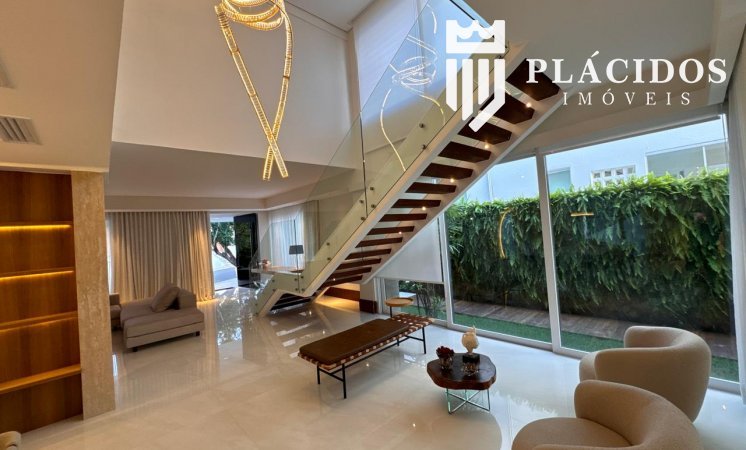 Localizada em Alphaville I, esta linda Mansão possui: terreno em ilha, com 600m2 de área 100% edificante - não tem APP (Área de Preservação Permanente). . Living com 100m2 em Salas de Estar e Jantar refrigerados 82.000 BTU's dutado, com som ambiente, Lavabo, Adega refrigerada p/ 200 garrafas e Louceiro Kitchens.. Cozinha com bancada mármore Calacata em ilha, cubas inox Mekal com triturador e armários Kitchens com iluminação interna LED. Equipamentos Kitchenaid com forno elétrico e coifa ilha. . Área de Serviço Kitchens com Máquina de Lavar e Secadora à gás Brastemp.. Varandas de Frente e Fundos mobiliadas, com som ambiente e 25m2 cada. . Espaço Gourmet com 48m2, mobiliado e refrigerado dutado, churrasqueira, fogão, coifa e máquina de gelo equipamentos Viking, bancada em Silestone, cuba inox Mekal com triturador e armários Kitchens com iluminação LED. Duas Cervejeras verticais. . Mezanino com Roupeiro e luz zenital. . Duas suítes filhos com camas de casal Queen 25m2 cada, todas com closet e armários Kitchens e varandas com parede verde automatizadas. Camas da loja Madeira Bonita e criados em laca. Iluminação natural por clarabóia. . Sanitários com porcelanato Portobello, bancadas em Silestone e louças/metais Deca. . Suíte Master com 30m2, cama de casal King size e mobiliário em laca Madeira Bonita. Gaveta refrigerada Kitchenaid e Home Theater. . Sala de Banho com Bancada em mármore asiático Ônix, pia dupla em ilha, banheira, louças/metais Deca e chuveiro duplo. Bancada de maquiagem em laca e poltronas Toque da Casa. . Garagem para 5 carros soltos e dois presos. . Academia de ginástica com 100m2 e equipamentos Technogym. Spa com Salão de Beleza e maca para massagem. Sanitário da Academia com bancada em Silestone. . Maleiro com Rack de Automação, CFTV, Central Telefone com 8 ramais, Internet em fibra-ótica com distribuição via cabos Cat7 e 5 repetidores wi-fi. . Quarto de Motorista e Dependência de Empregadas (Suíte) com armários, TV e ar condicionado. . Depósito e Maleiro. . Reaproveitamento de água de chuva e irrigação automatizada. Aquecimento solar para água quente. Poço artesiano.
